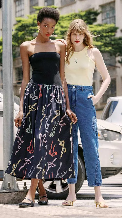 No último dia 6 de fevereiro, um dos momentos marcantes dessa nova fase foi o lançamento da collab entre a Mindse7, submarca da C&A lançada em 2018, e a Lo de Lui, marca independente de São Paulo fundada pela designer Luiza Rosas. A coleção-cápsula celebra a autenticidade ao unir as características criativas e inovadoras de ambas as marcas. A Lo de Lui, conhecida por suas criações marcantes, se destaca pelo uso vibrante de cores e estampas arrojadas. Para esta coleção, Luiza Rosas criou uma estampa exclusiva inspirada em laços, que captura a essência artística de sua marca. A paleta de cores energética da estampa se alinha perfeitamente ao DNA inovador da Mindse7. Além disso, a coleção apresenta peças em tricô, uma novidade no portfólio da Lo de Lui, que reforça o estilo cool & chic característico da Mindse7.